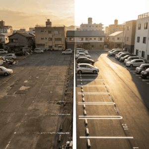 施工概要 長崎県佐世保市本島町にある個人経営の飲食店に併設された平面駐車場(5台分)にて、駐車区画線の再塗装工事を行いました。夜間営業も行っている店舗であり、夕方以降の視認性低下が特に問題となっていました。 ご相談の背景 […]