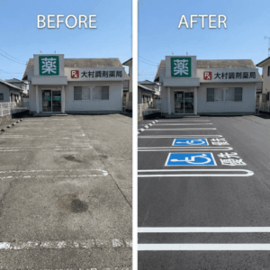 【施工実績】長崎県大村市玖島|調剤薬局併設駐車場のライン補修工事