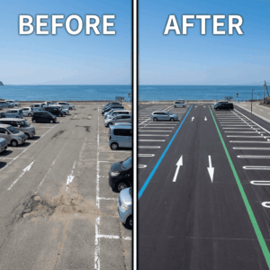 【施工実績】福岡県糸島市志摩初|観光施設駐車場のライン・誘導表示工事